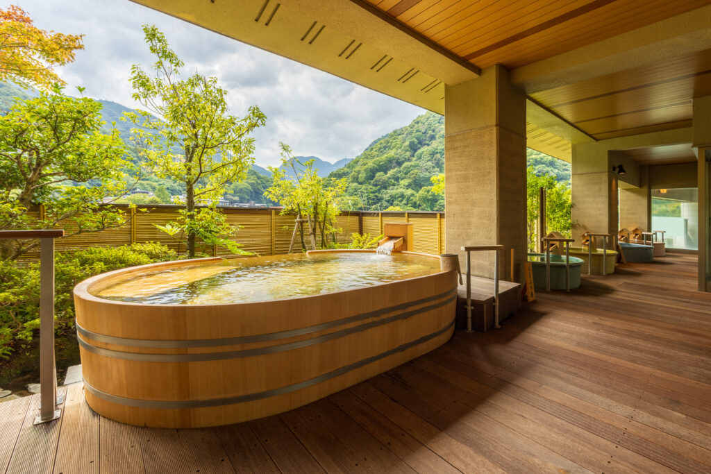 - 駅から徒歩5分: 箱根湯本駅から商店街や川沿いの道を歩いてすぐ。タクシーを使わなくても、ほとんど濡れずに到着できます。