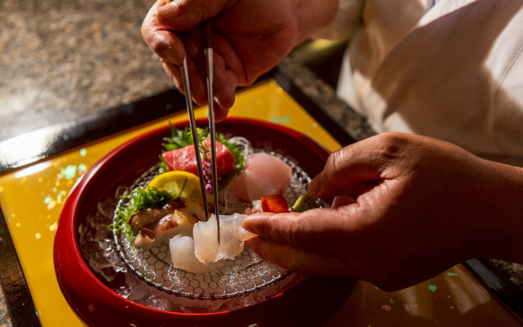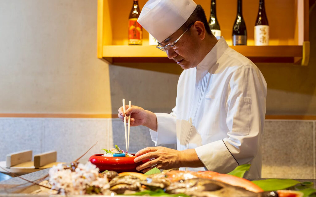 食材の仕入交渉を積み重ね、お客さまにお喜びいただくため日夜研究をしております。リピータのお客さまから、初めてご来館いただくお客さままでご満足いただけるよう、一品一品にこだわりを持ち調理しております。すべての会席料理を一人で作るわけではありませんので、チームワークを大切に日夜奮闘しております。